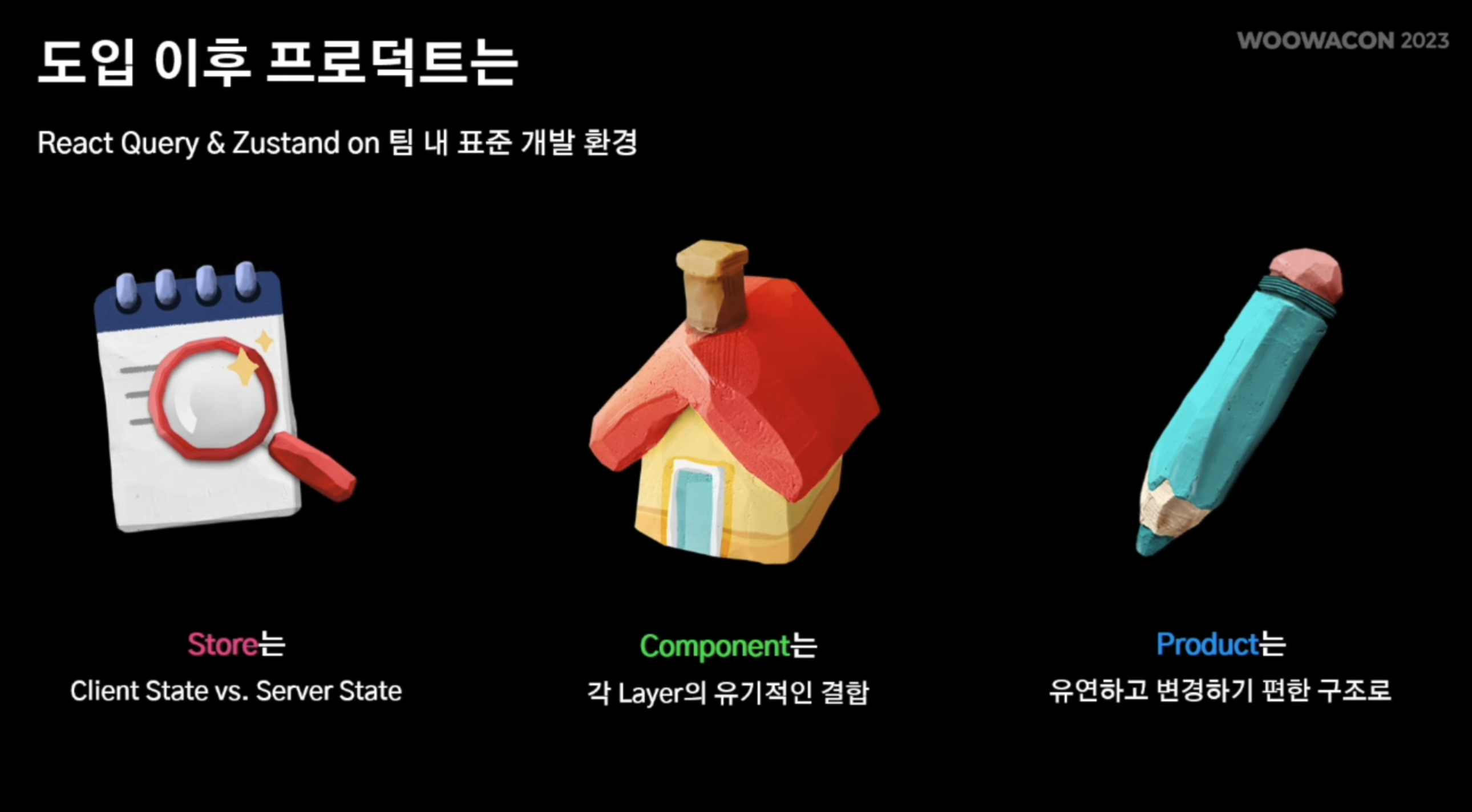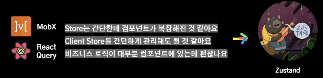 - 간결한 코드와 향상된 개발 생산성: 주스탠드의 간단한 API와 리액트 쿼리의 효율적인 데이터 페칭 모델 덕분에, 코드 베이스가 깔끔해지고 개발자가 더 집중할 수 있는 환경이 조성됩니다.
