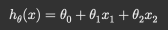 - h_\theta(x) = \theta_0 + \theta_1 x_1 + \theta_2 x_2