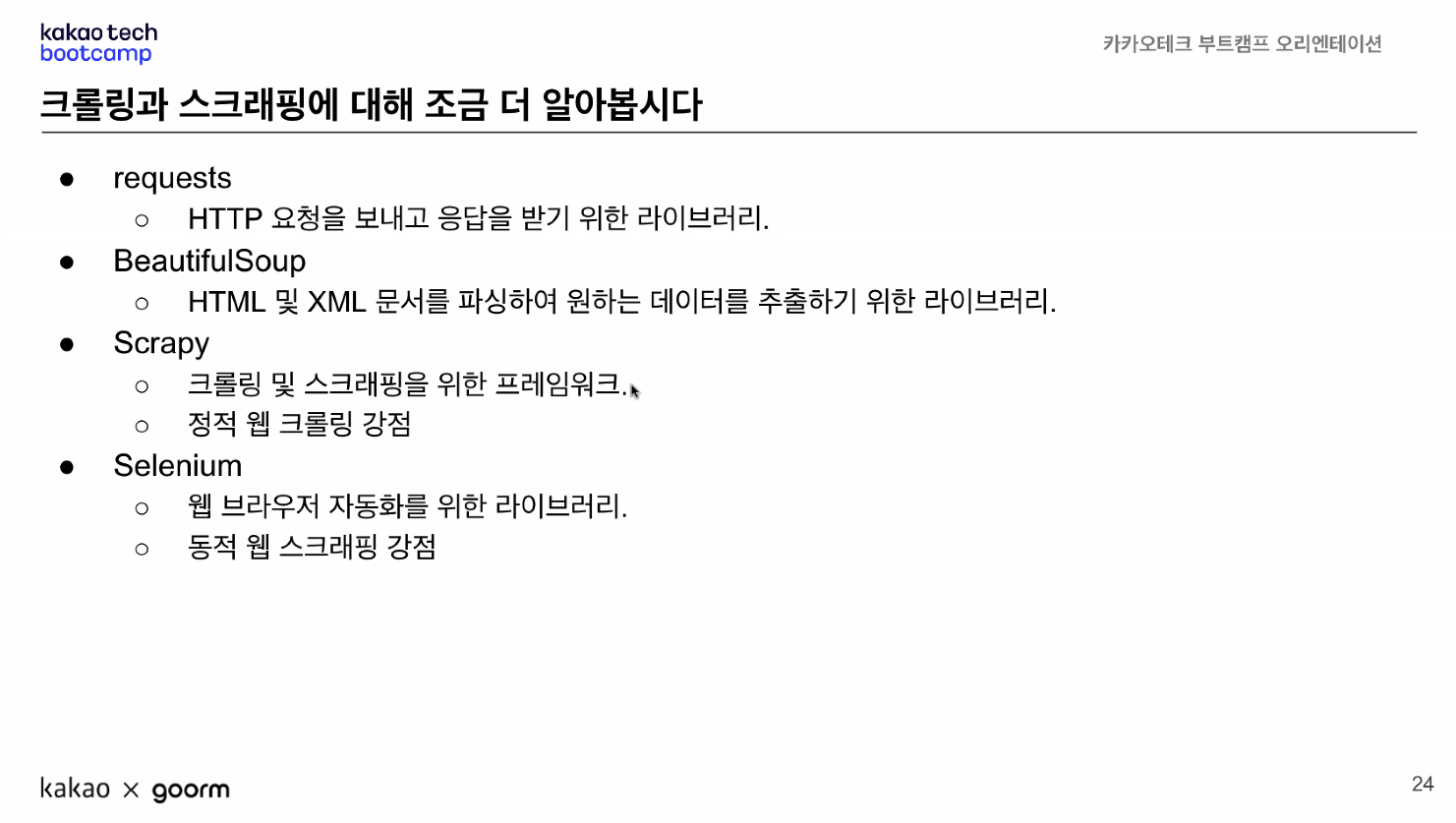 🍋카카오 부트캠프🍋 1회차 실습 : 크롤링과 스크래핑-scrapy/Selenium