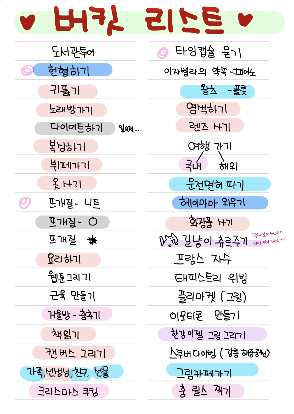 오른쪽은 내가 쓴 대학생활용 버킷리스트