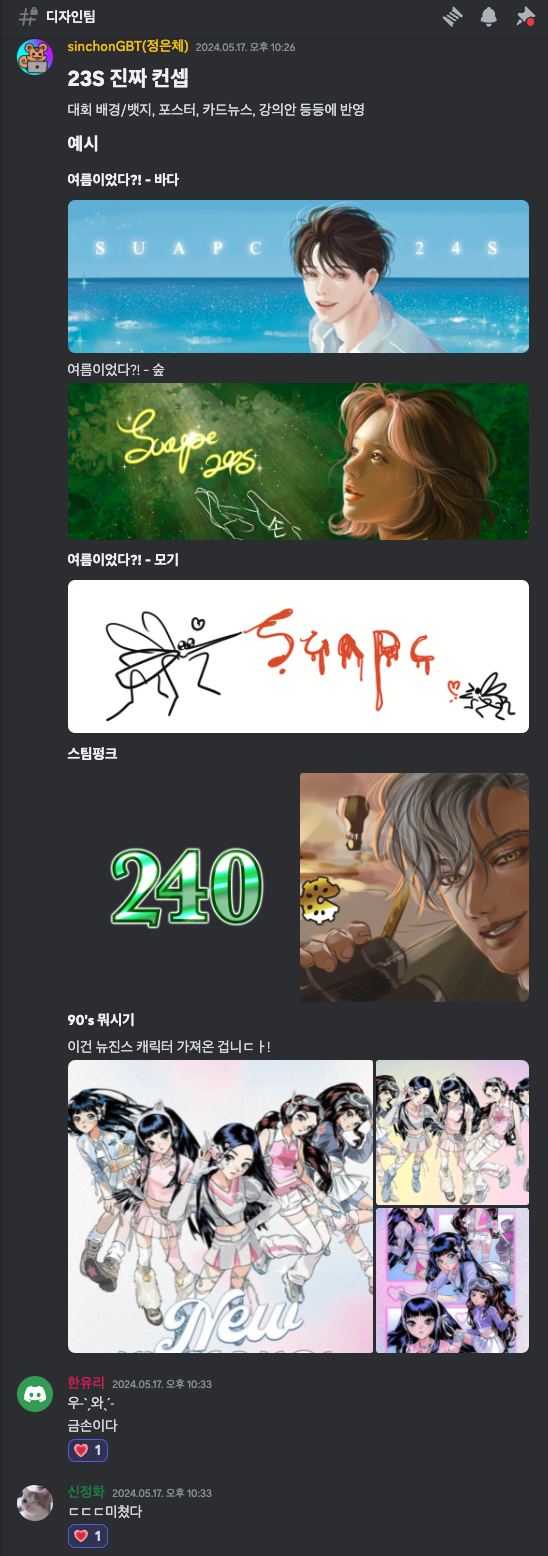 | 🖌️ SUAPC 24s 컨셉 구상 (0) | 2024.04.12 |
