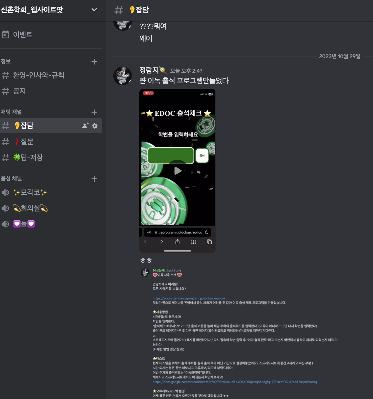 예를 들어서 저는 어제 "이독 출석 프로그램"을 만들었어요!