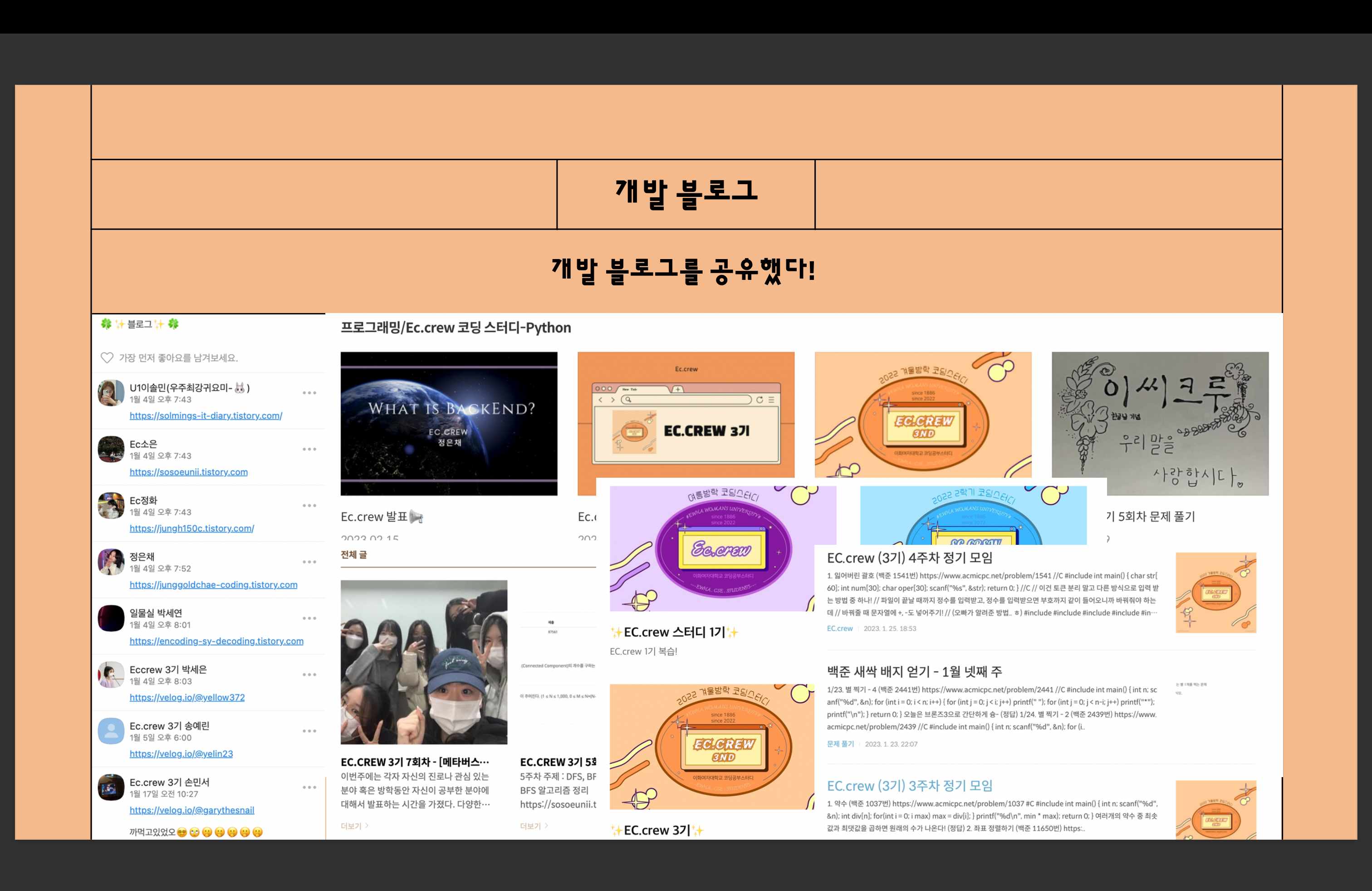 | 𝗘𝗰.𝗰𝗿𝗲𝘄 발표📢 (1) | 2023.02.15 |