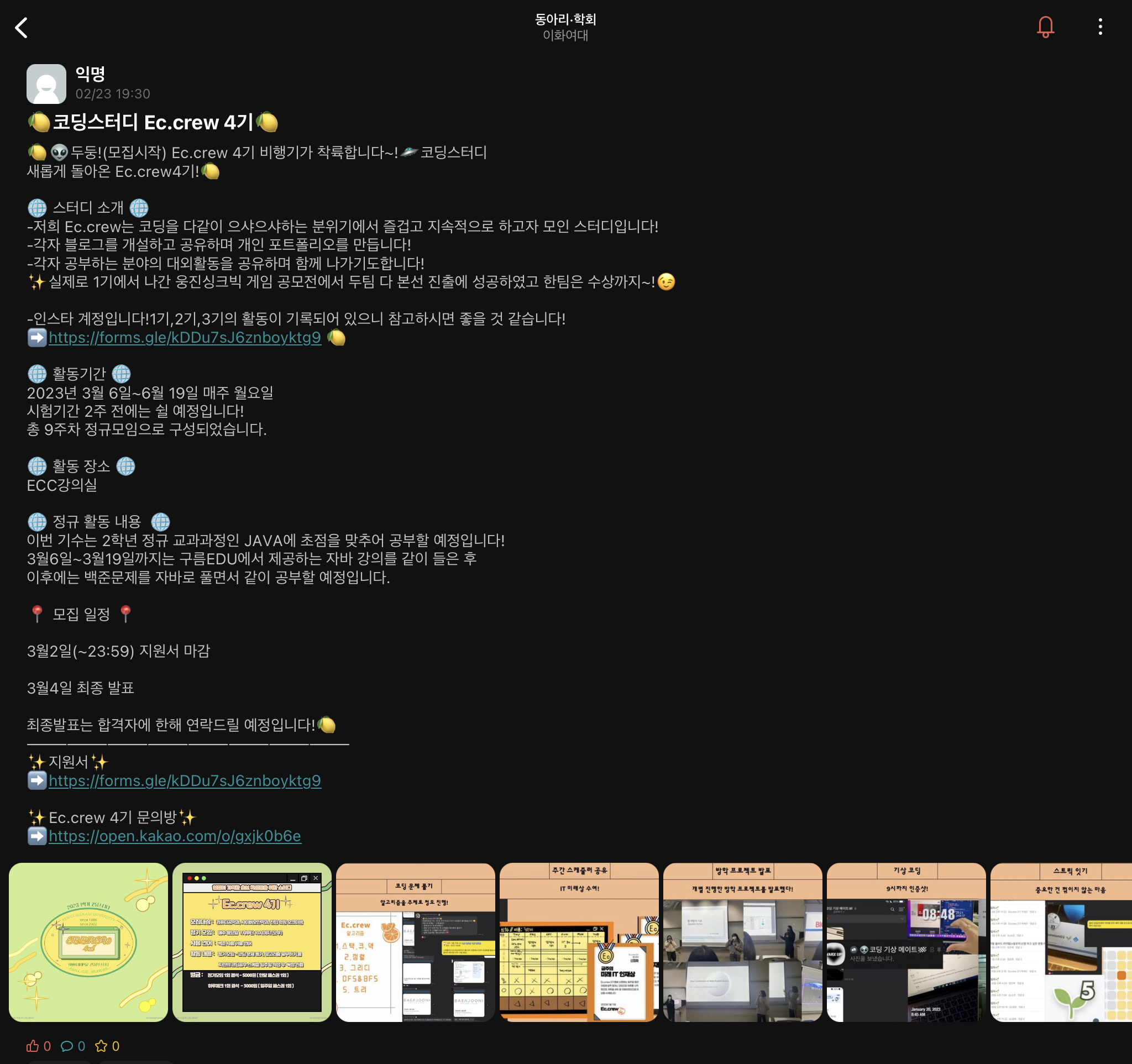 | 𝗘𝗰.𝗰𝗿𝗲𝘄 발표📢 (1) | 2023.02.15 |
