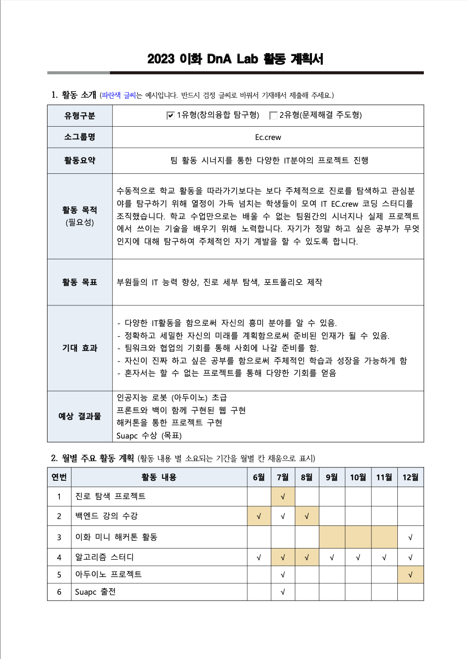 12월까지의 활동을 위한 Ec.crew 4기 지속