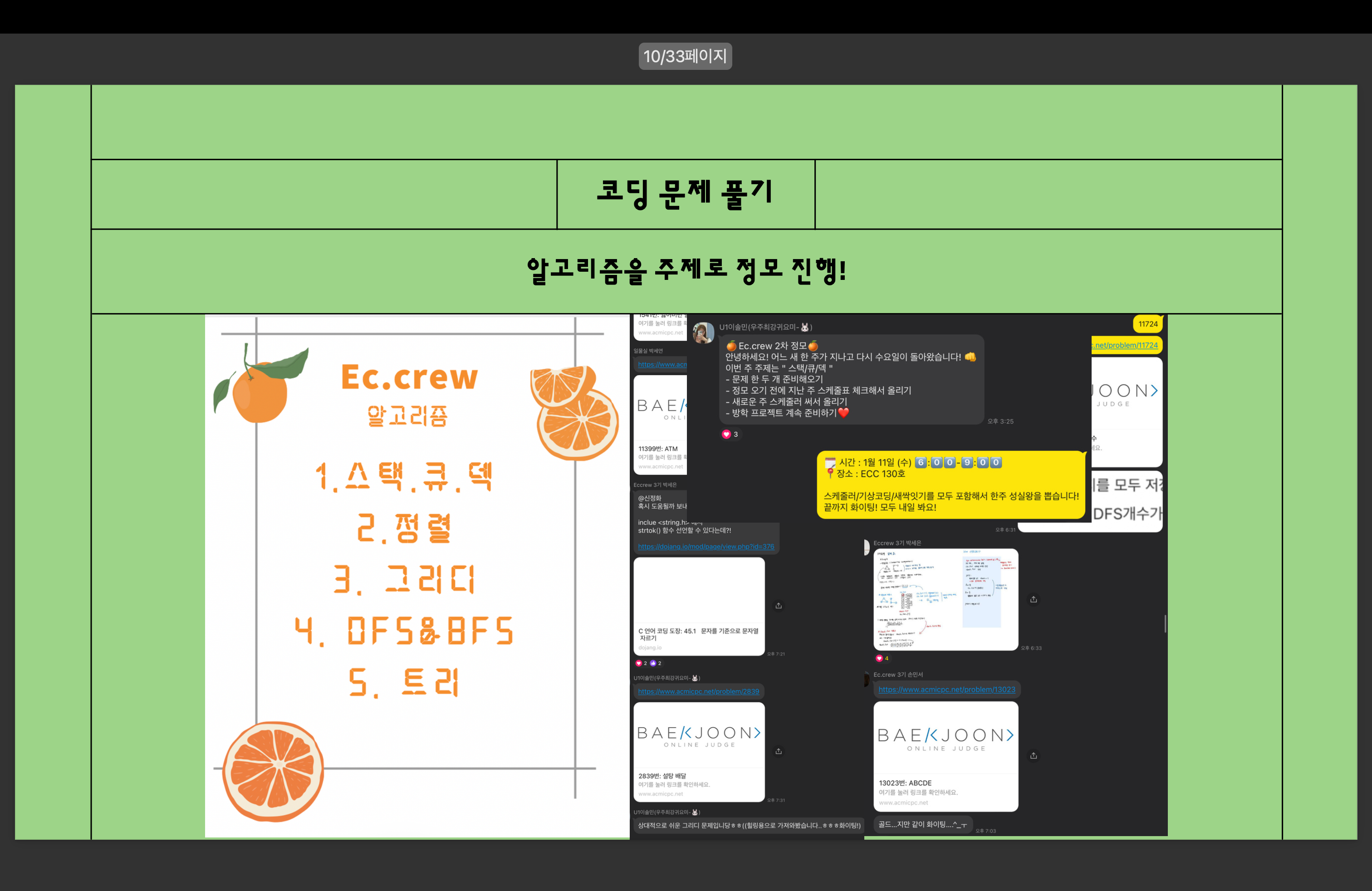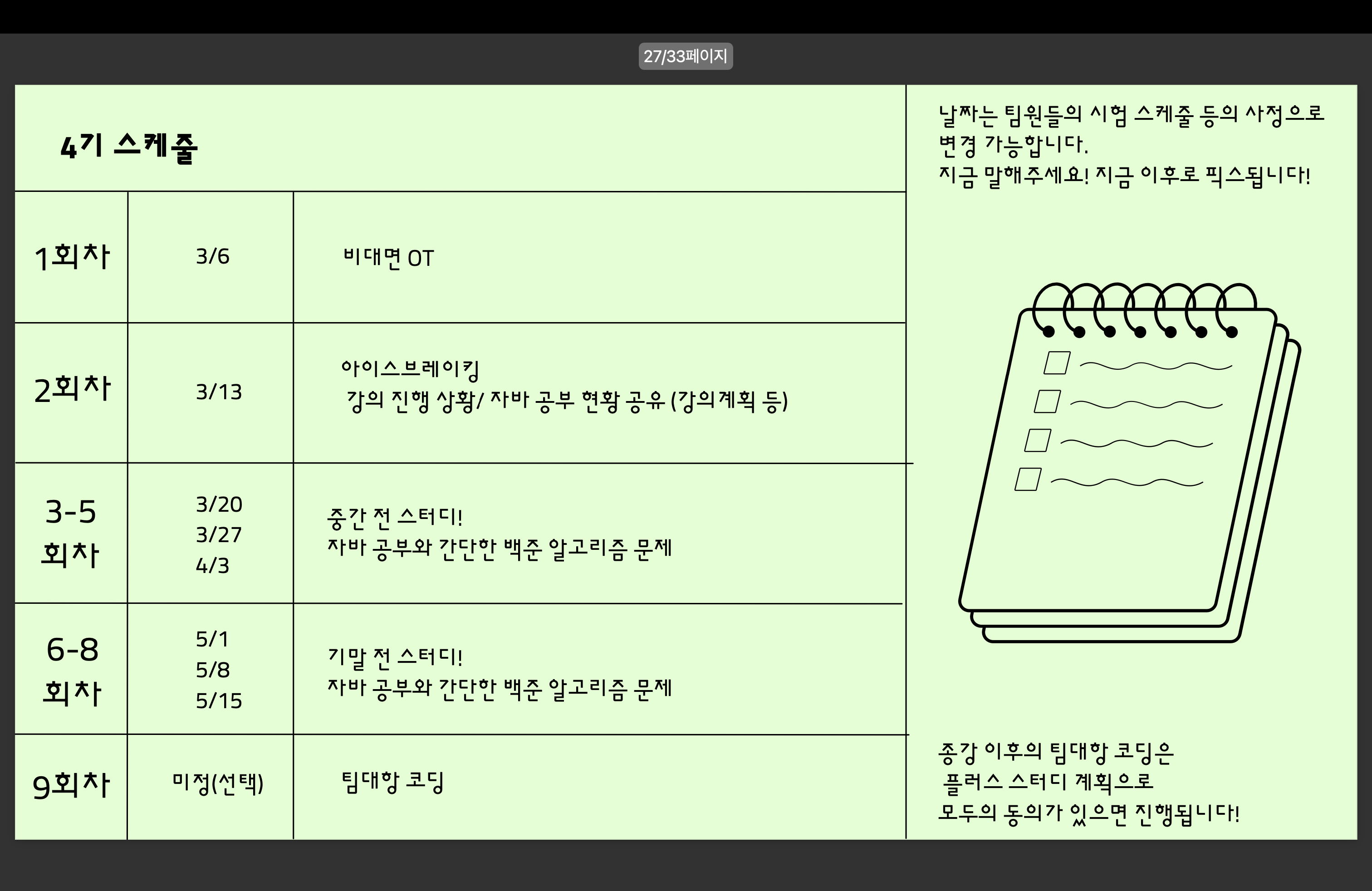 기말고사 전 3주 정모는 해당 범위 내 백준 풀면서 체화하기