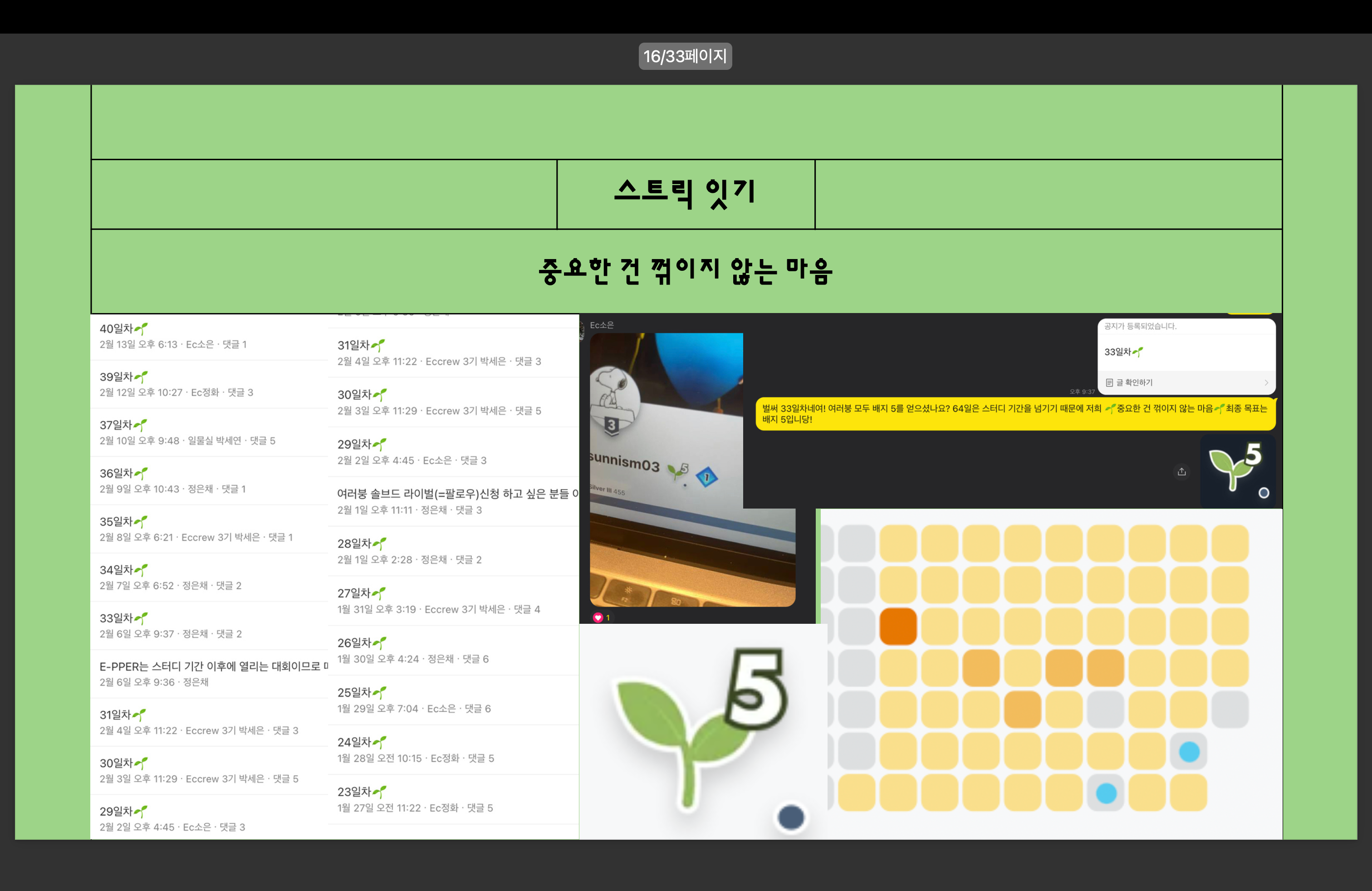 (전체기간 - 스트릭잇기, 깃허브코드올리기, 주간스케줄러, IT상,공부현황공유, 번개스터디, 문제내기)