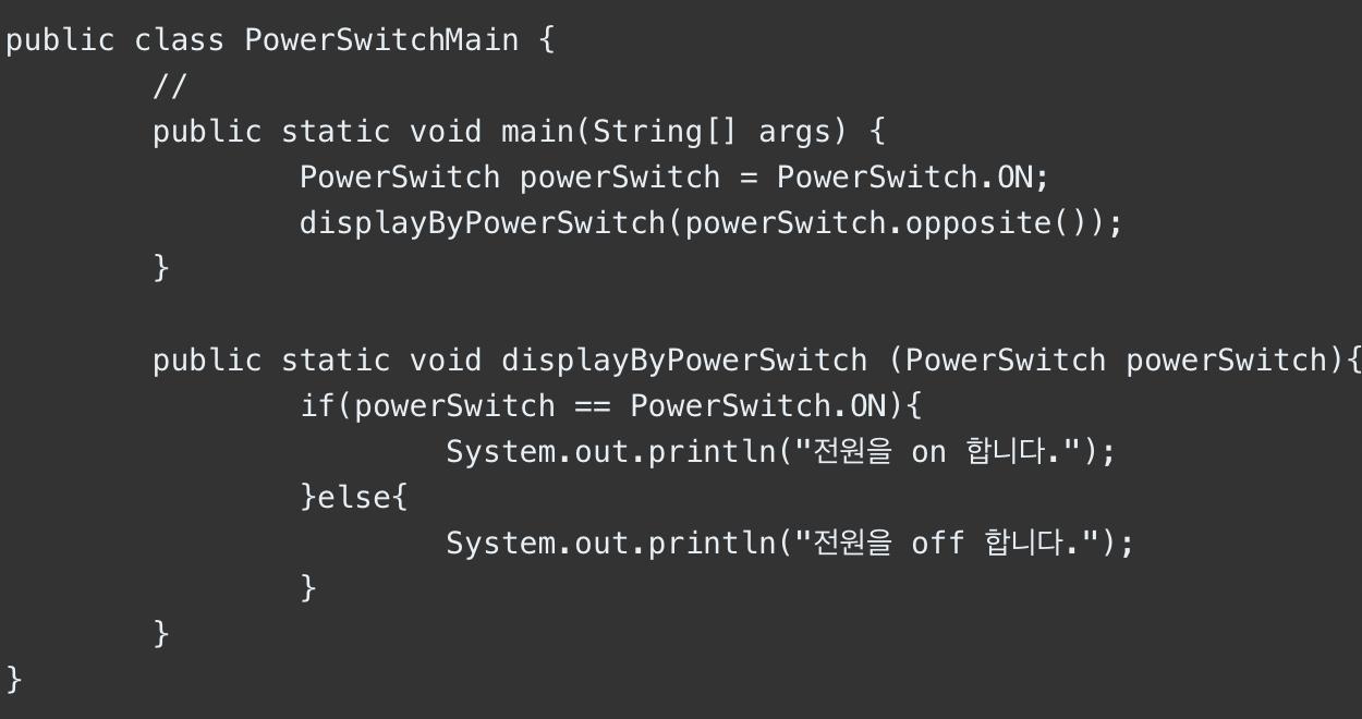 - 키워드 enum으로 구현의 의도가 열거임을 확실시
