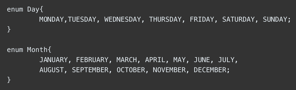 이번 글에서는 자바 1.5버전부터 새롭게 추가된 열거형 상수인 enum(enumeration)에 대해 알아보겠습니다. 열거형은 서로 연관된 상수들의 집합입니다. 이번 글은 enum 정의와 enum 사용방법, 그리고 enum