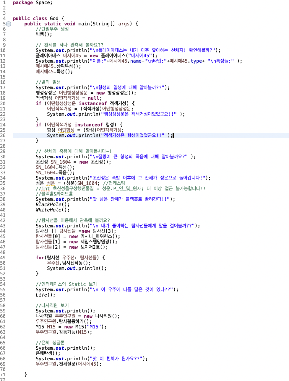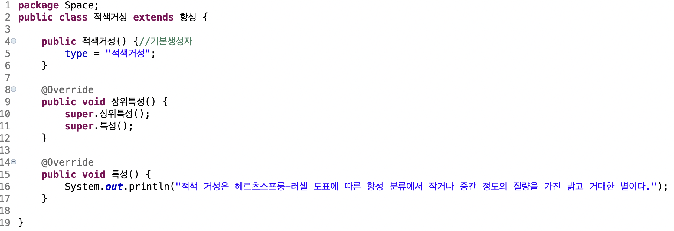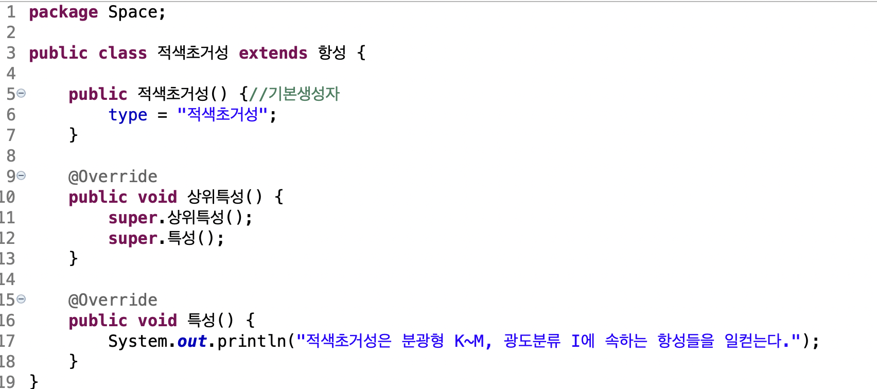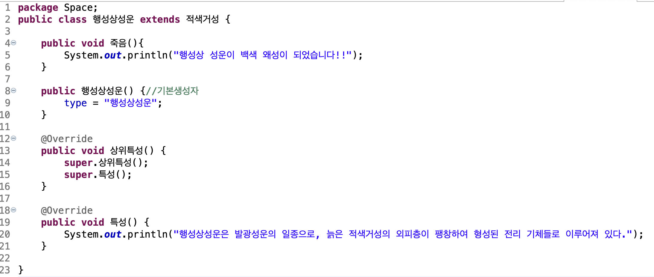 행성상 성운은 원래 적색 거성이었습니다. 적색 거성은 원래 항성이었습니다. instanceof를 이용해 이를 확인해봅니다.