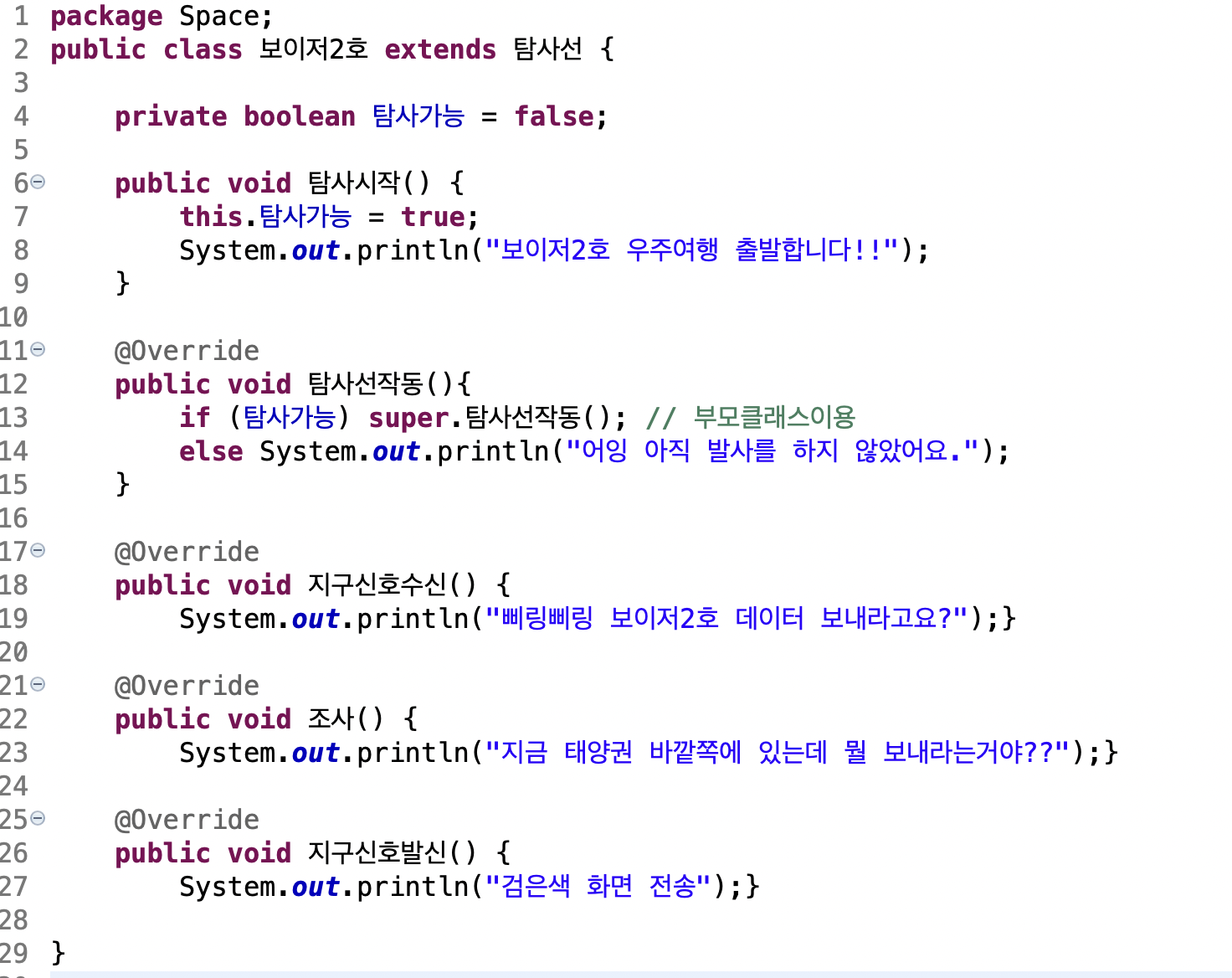 탐사선작동 메소드 탐사가능 변수값에 따라 작동(super 이용해서 코드 줄임)