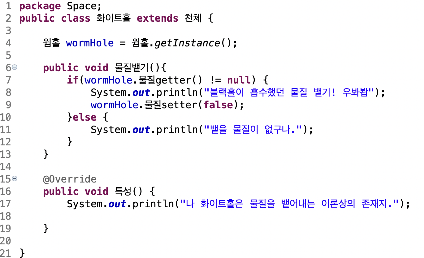 웜홀 인스턴스를 이용해 물질을 방출합니다.(물질setter(), 물질getter()이용)