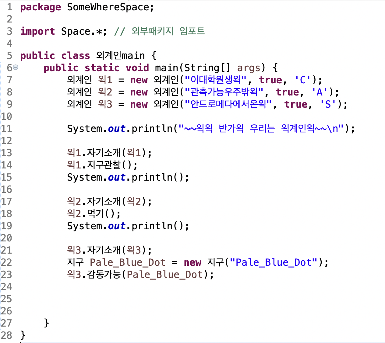 외계인은 외부 패키지에, Space 패키지 임포트