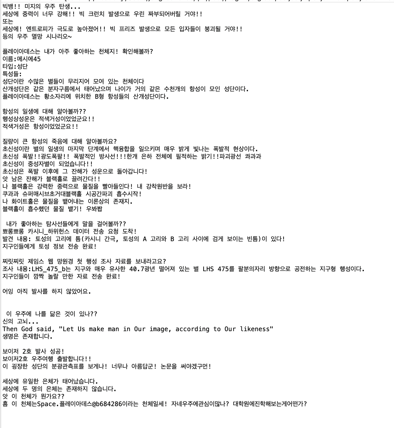 ⭐️시나리오명 : 우주와 나⭐️