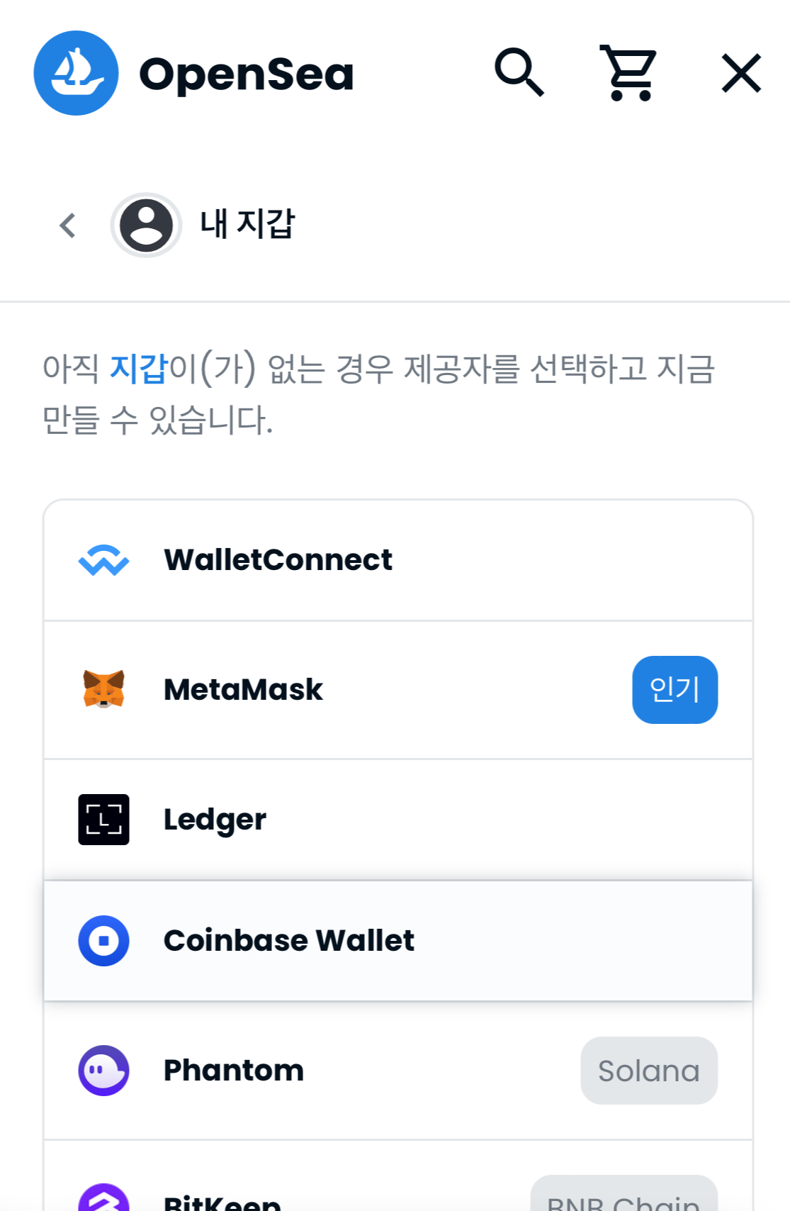 "오픈씨"를 선택!