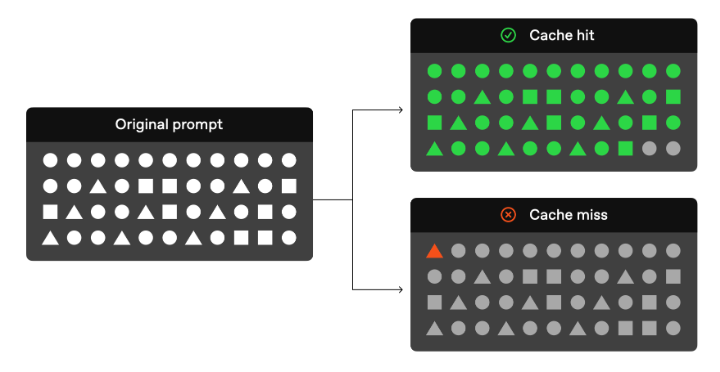 시스템이 프롬프트의 초기 부분(접두사)이 캐시에 저장되어 있는지 확인