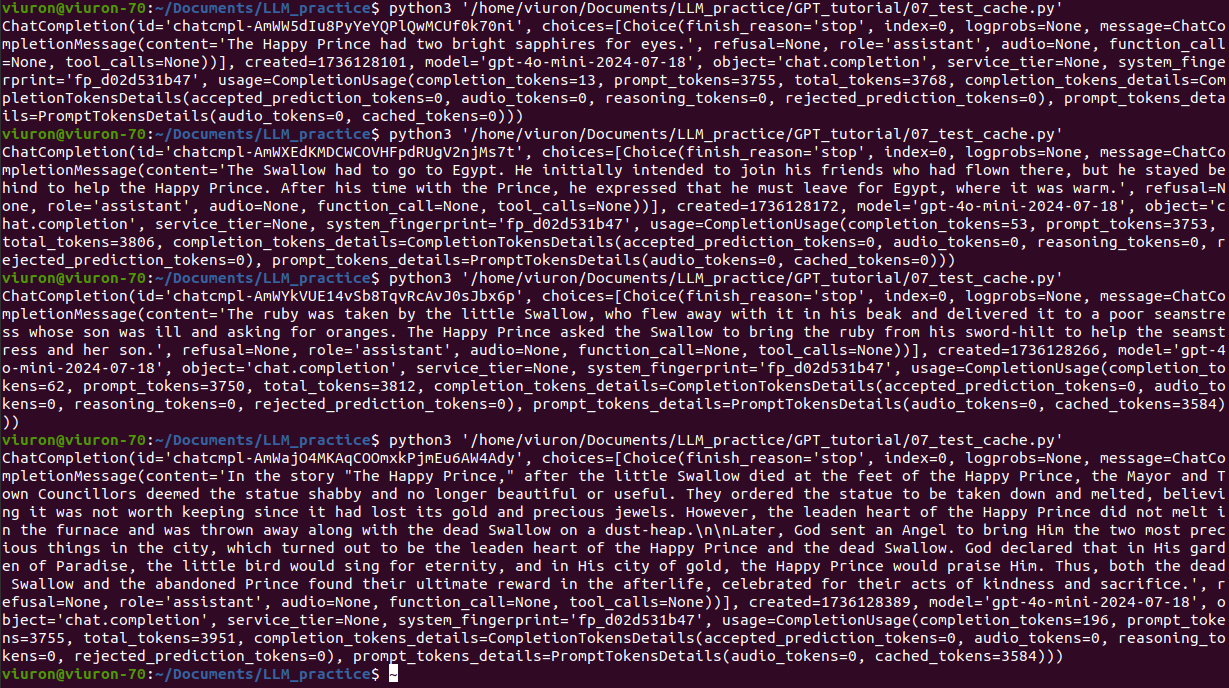 => 이는 프롬프트 자체만 캐시되고 실제 응답은 캐시된 프롬프트를 기반으로 매번 새로 계산되기 때문