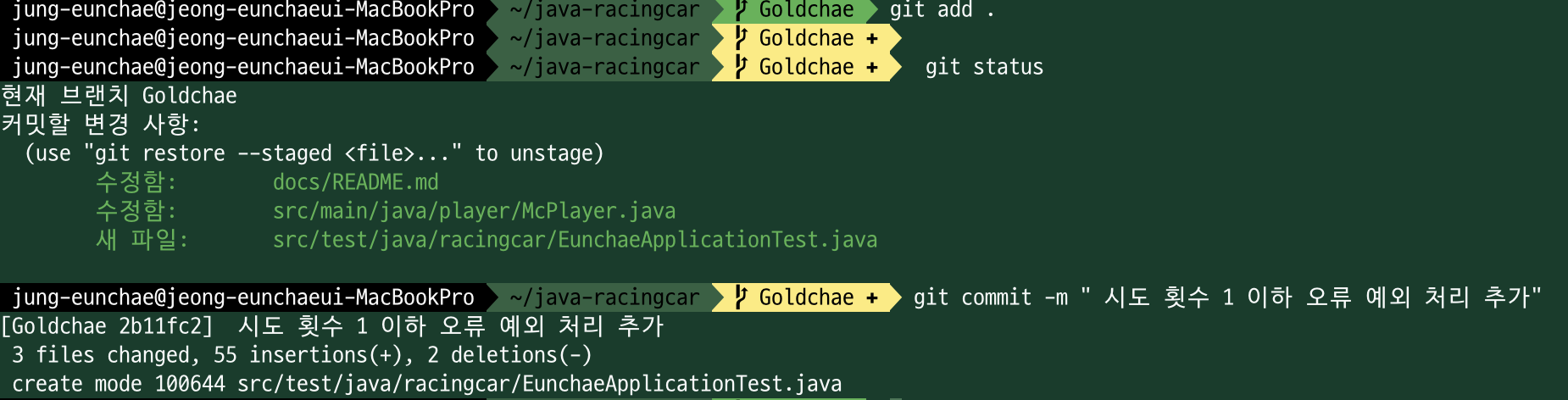 - 미션은 java-racingcar-6 저장소를 Fork & Clone해 시작한다.⭕️