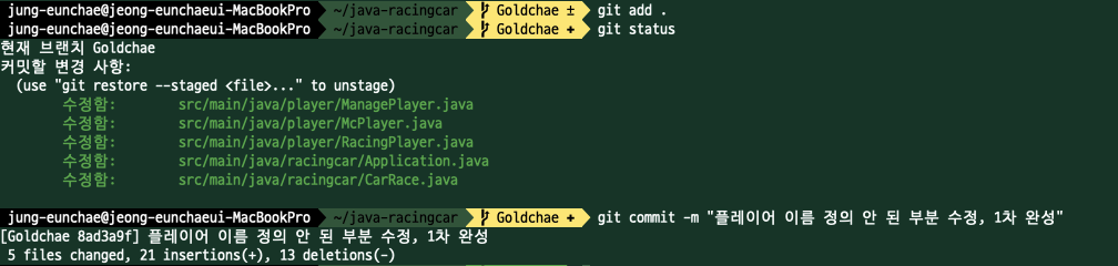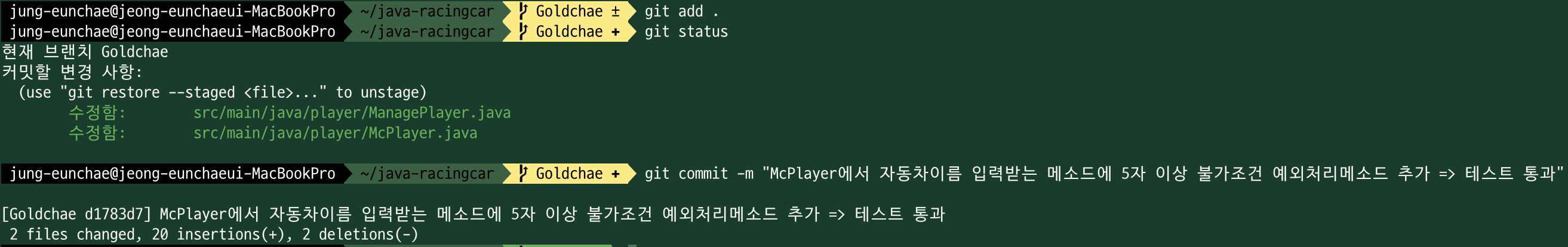 COMMIT - McPlayer에서 자동차이름 입력받는 메소드에 5자 이상 불가조건 예외처리메소드 추가 => 테스트 통과