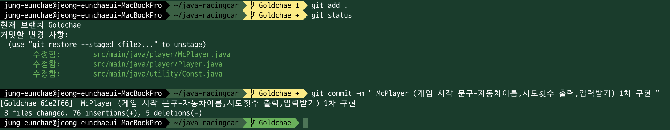 COMMIT - McPlayer (게임 시작 문구-자동차이름,시도횟수 출력,입력받기) 1차 구현