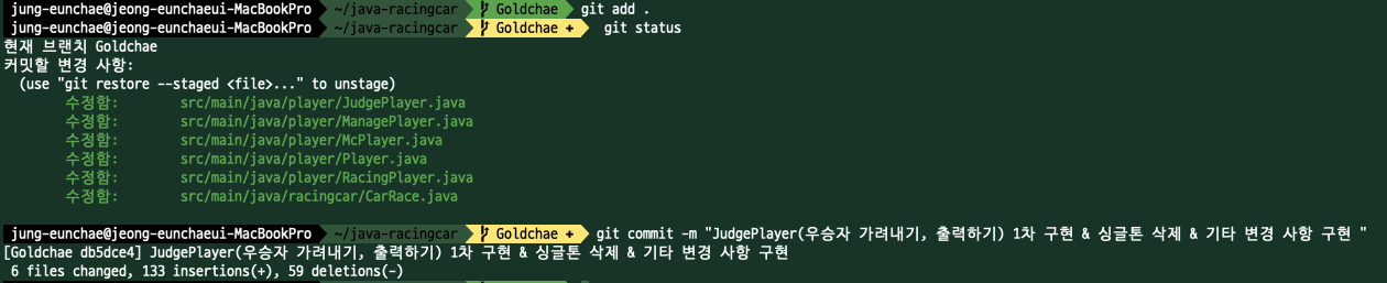 COMMIT - JudgePlayer(우승자 가려내기, 출력하기) 1차 구현 & 싱글톤 삭제 & 기타 변경 사항 구현
