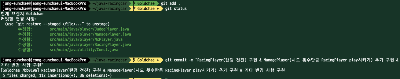 COMMIT - RacingPlayer(랜덤 전진) 구현 & ManagePlayer(시도 횟수만큼 RacingPlayer play시키기) 추가 구현 & 기타 변경 사항 구현
