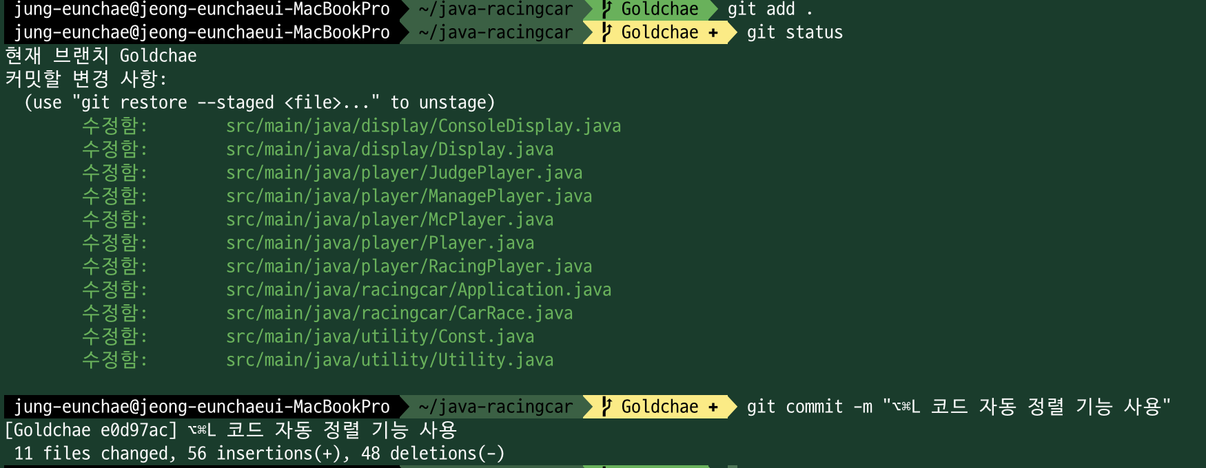 COMMIT - ⌥⌘L 코드 자동 정렬 기능 사용