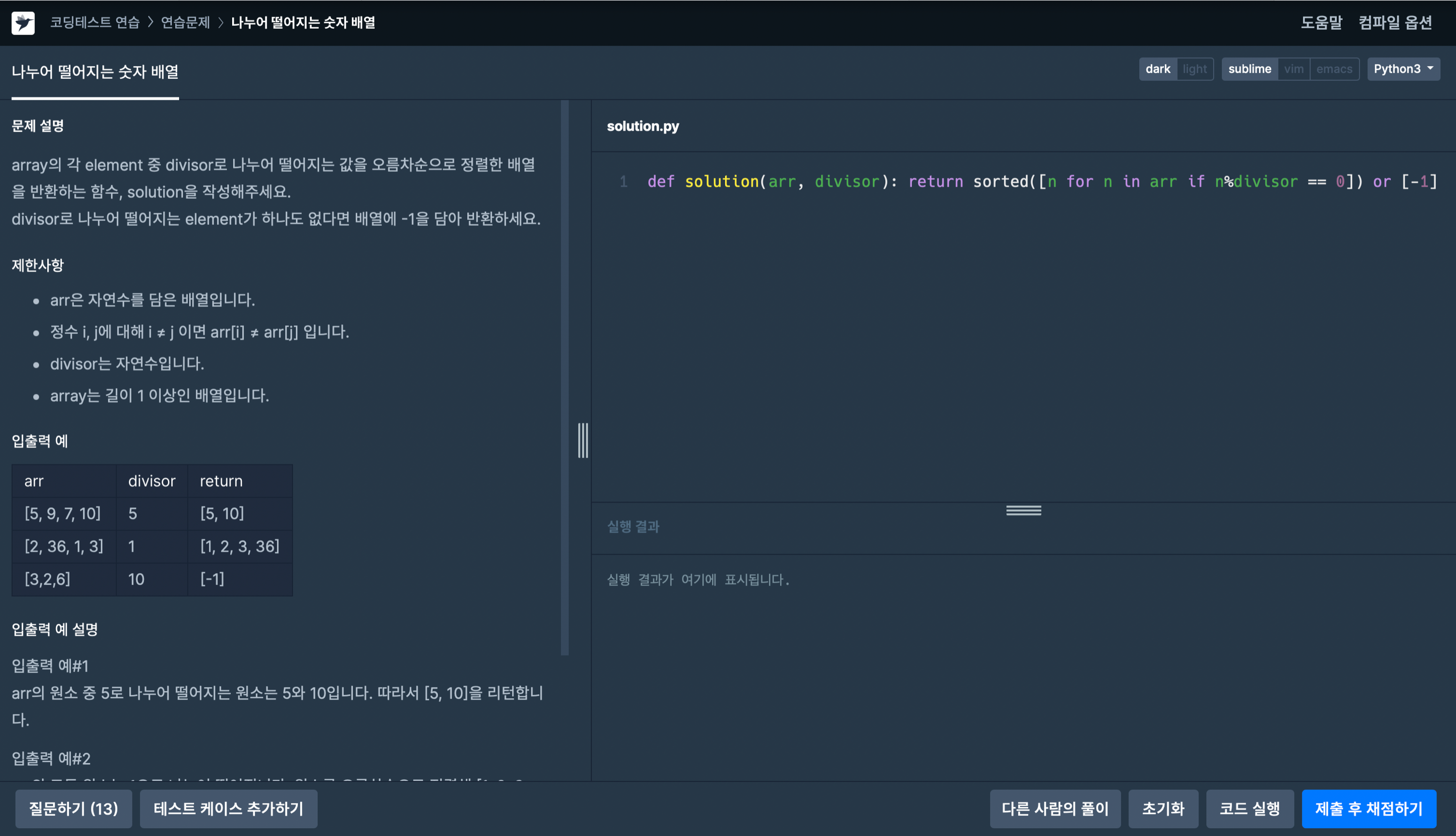 <나경 - 프로그래머스: 나누어 떨어지는 숫자 배열>