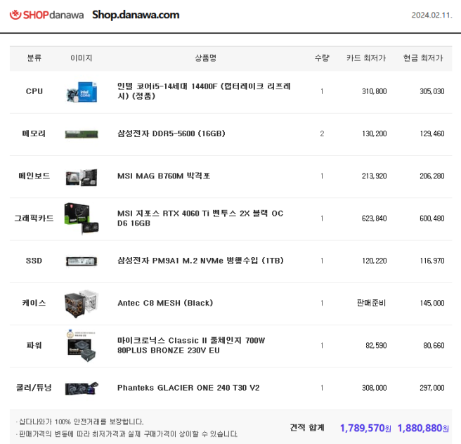 프리미엄 조립PC_P1488W (14600KF/4070TiS) : 컴퓨존