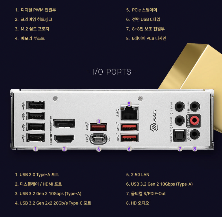 인텔(소켓1700)/인텔 H610/M-ATX (23.6x20.8cm)/전원부:8+1+1페이즈/메모리/DDR4/3200MHz (PC4-25600)/2개/메모리 용량:최대 64GB/XMP/확장슬롯/VGA 연결:PCIe4.0 x16/PCIe버전:PCIe4.0,PCIe3.0,PCIe/PCIex16:1개/PCIex1:1개/저장장치/M.2:1개/SATA3:4개/M.2 연결:PCIe,NVMe,SATA/후면단자/D-SUB/HDMI/USB 3.0/USB 2.0/RJ-45/오디오잭/PS/2/랜/오디오/유선랜 칩셋:Intel I219V/기가비트/RJ-45:1개/오디오 칩셋:Realtek ALC897/7.1채널(8ch)/내부I/O/I/O 헤더:USB 3.0 헤더,USB 2.0 헤더,TPM 헤더/시스템팬 4핀:1개/USB2.0 헤더:2개/USB3.0 헤더:1개/특징