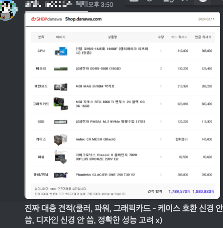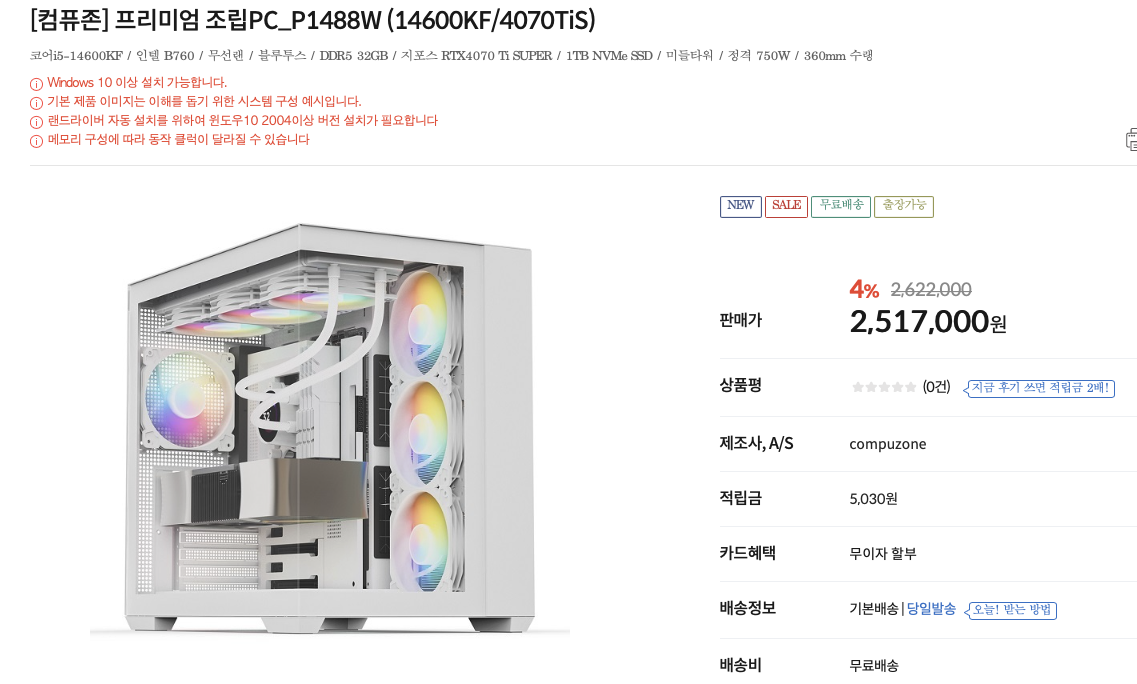 [컴퓨존] 프리미엄 조립PC_P1488W (14600KF/4070TiS)