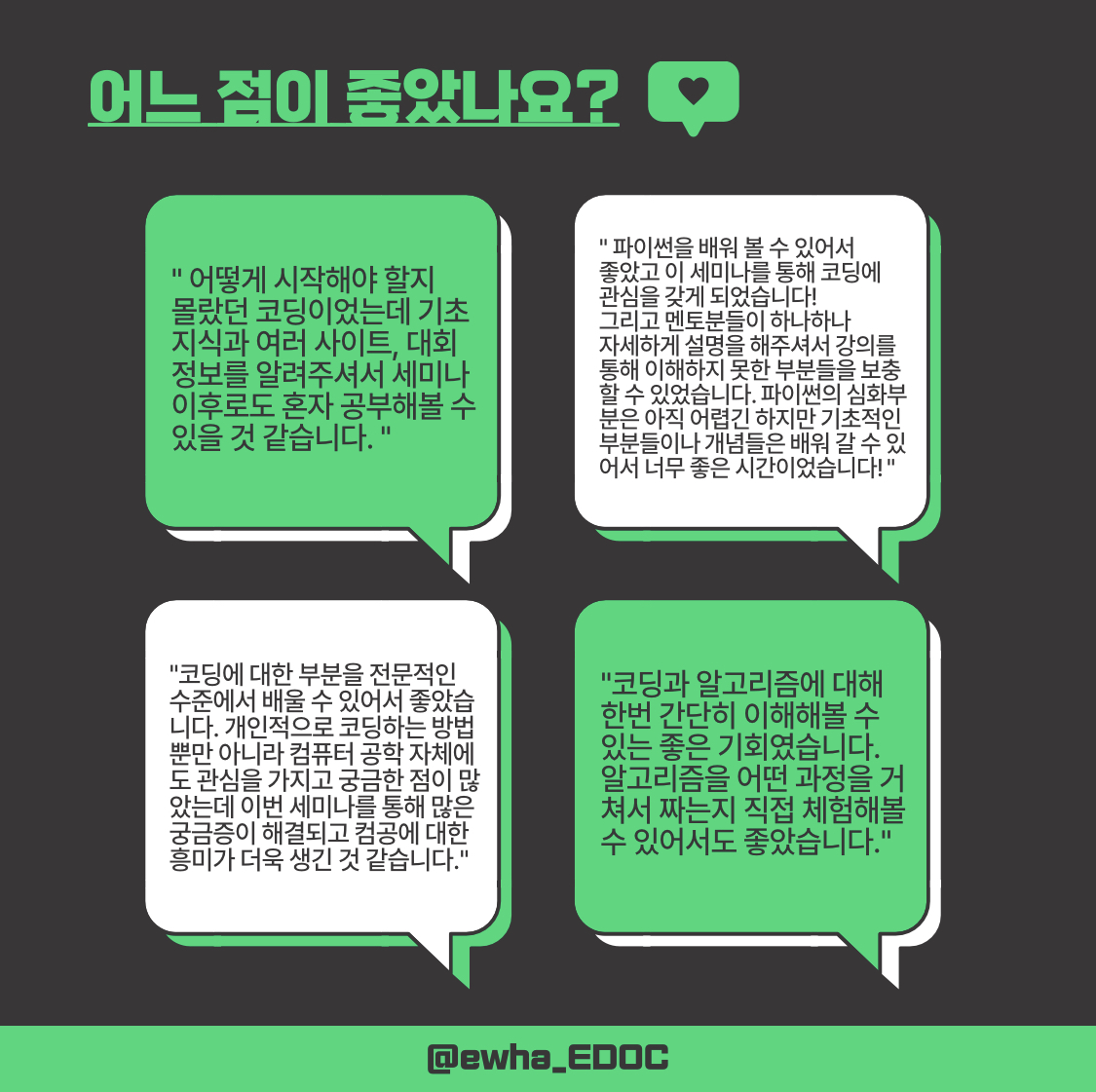 🪺 𝙴𝙳𝙾𝙲 / 🐣IT 데뷔탕트🐣 - 알고리즘 세미나 1 (0) | 2023.07.03 |