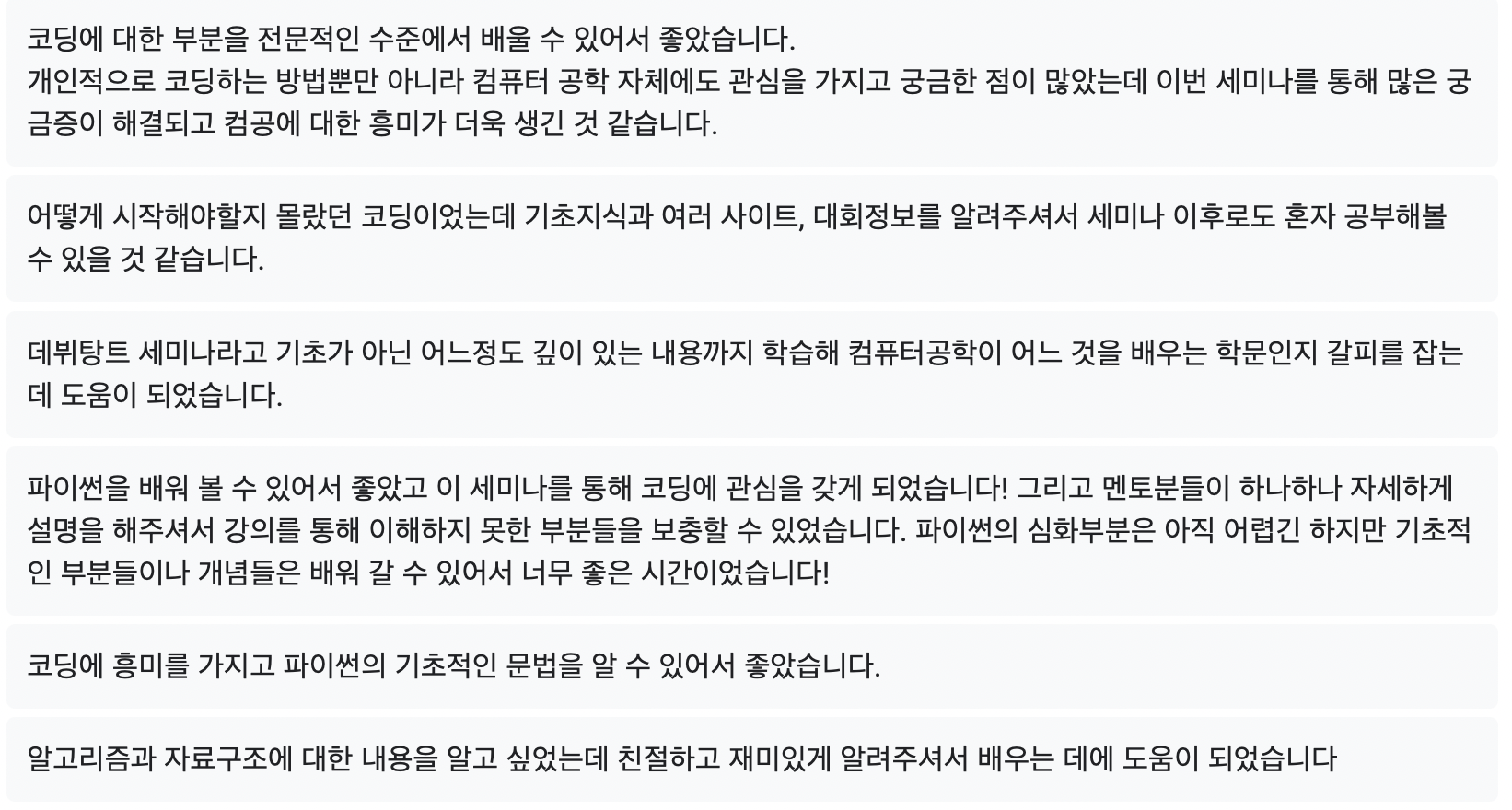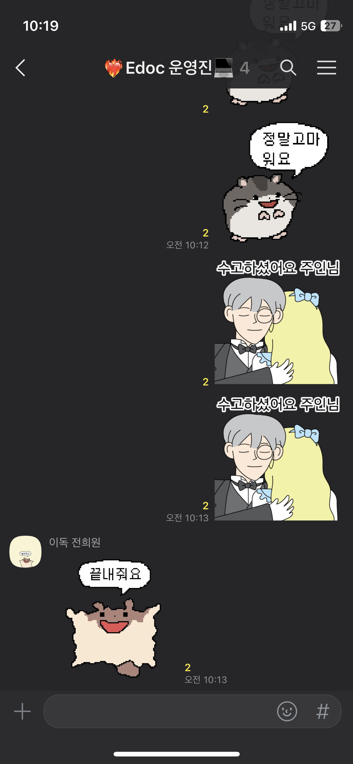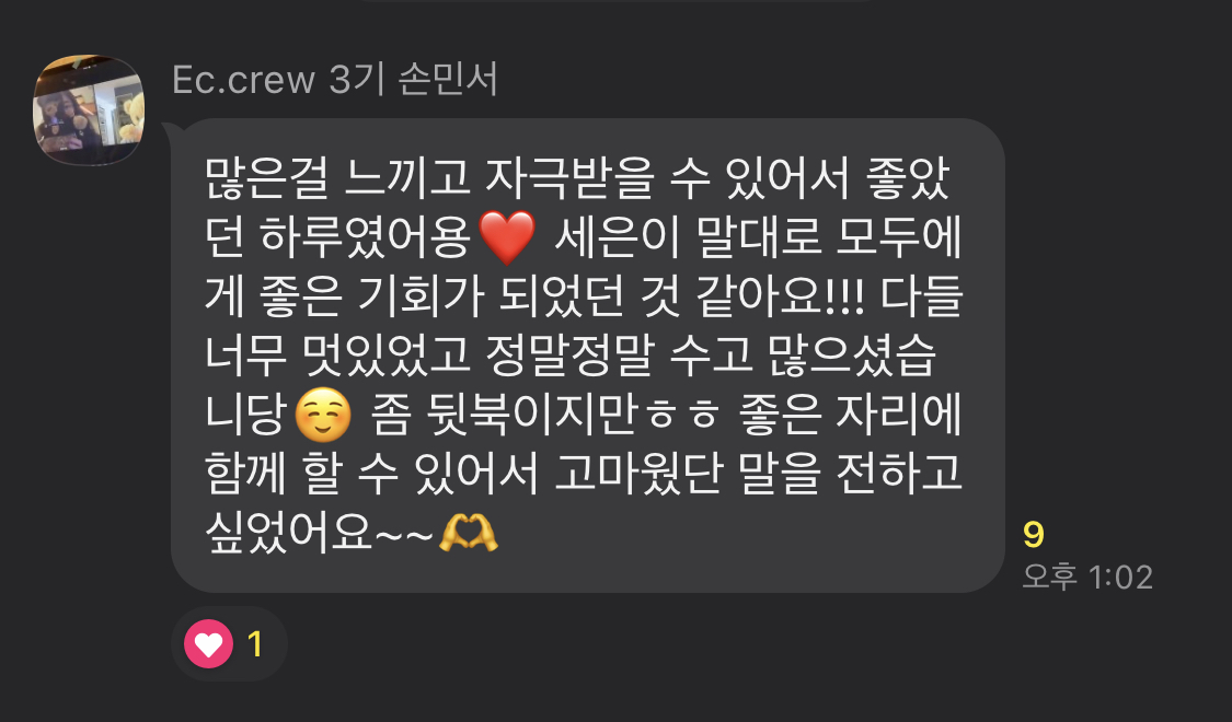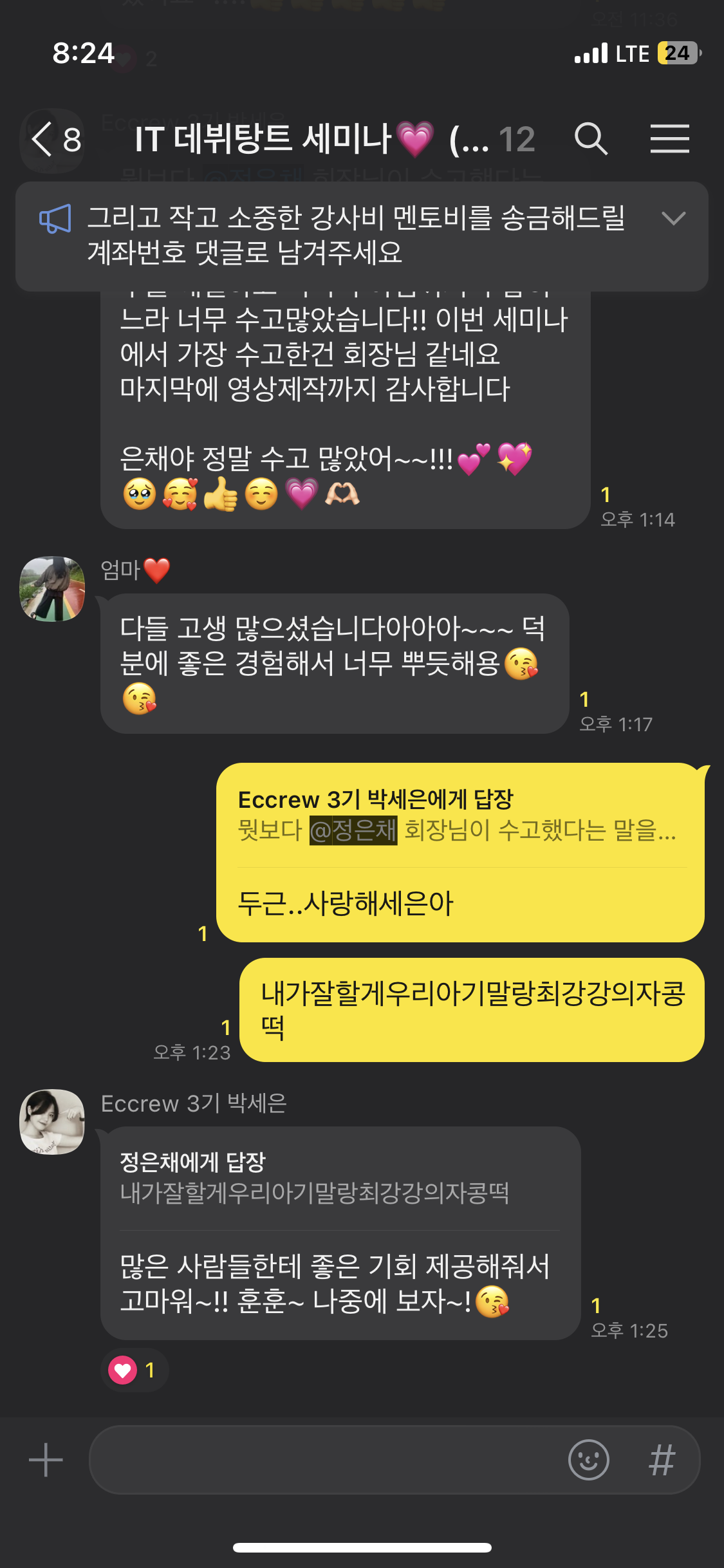 여러분은 이독 부원이 아니시지만 저희 세미나로 스터디가 맺어지게 되셨으니 명예 세미 이독입니다🥰세미나 단톡을 통해 이독의 프로젝트들을 공유해 드리겠습니다. (이번 icpc 참여부터 신촌 연합 활동 참여,suapc 참여 공지, 이독 외부 학생 강사 세미나 참여 등) 그리고 궁금한 사항은 저나 멘토에게 물어보셔도 됩니다!