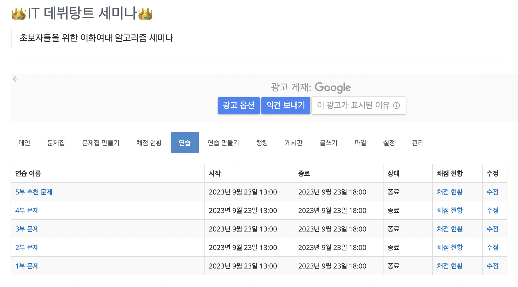 | 🐣IT 데뷔탕트🐣 - 알고리즘 세미나 당일 (0) | 2023.09.21 |