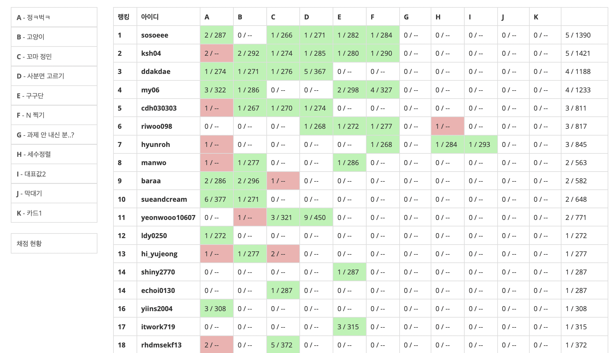 대회형 구성입니다! Icpc 대회는 세 명이서 나가실 수 있습니다! 이번 icpc나 겨울 suapc를 목표로 잡고 공부하시면 동기부여도 되고 열정에 도움이 되실 거라고 생각합니다.