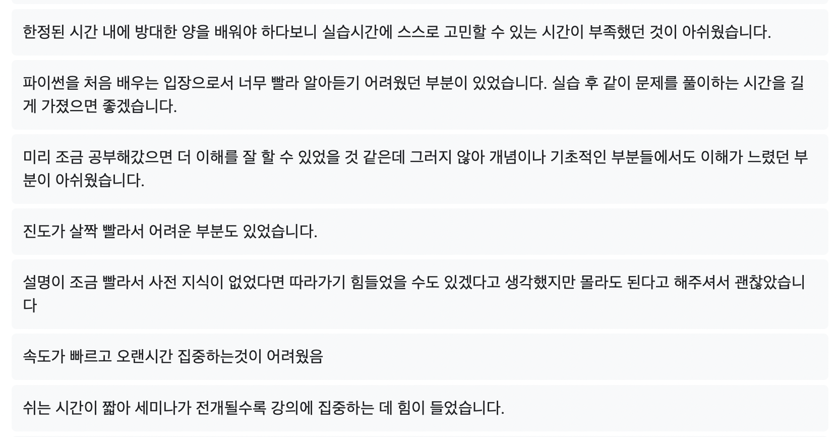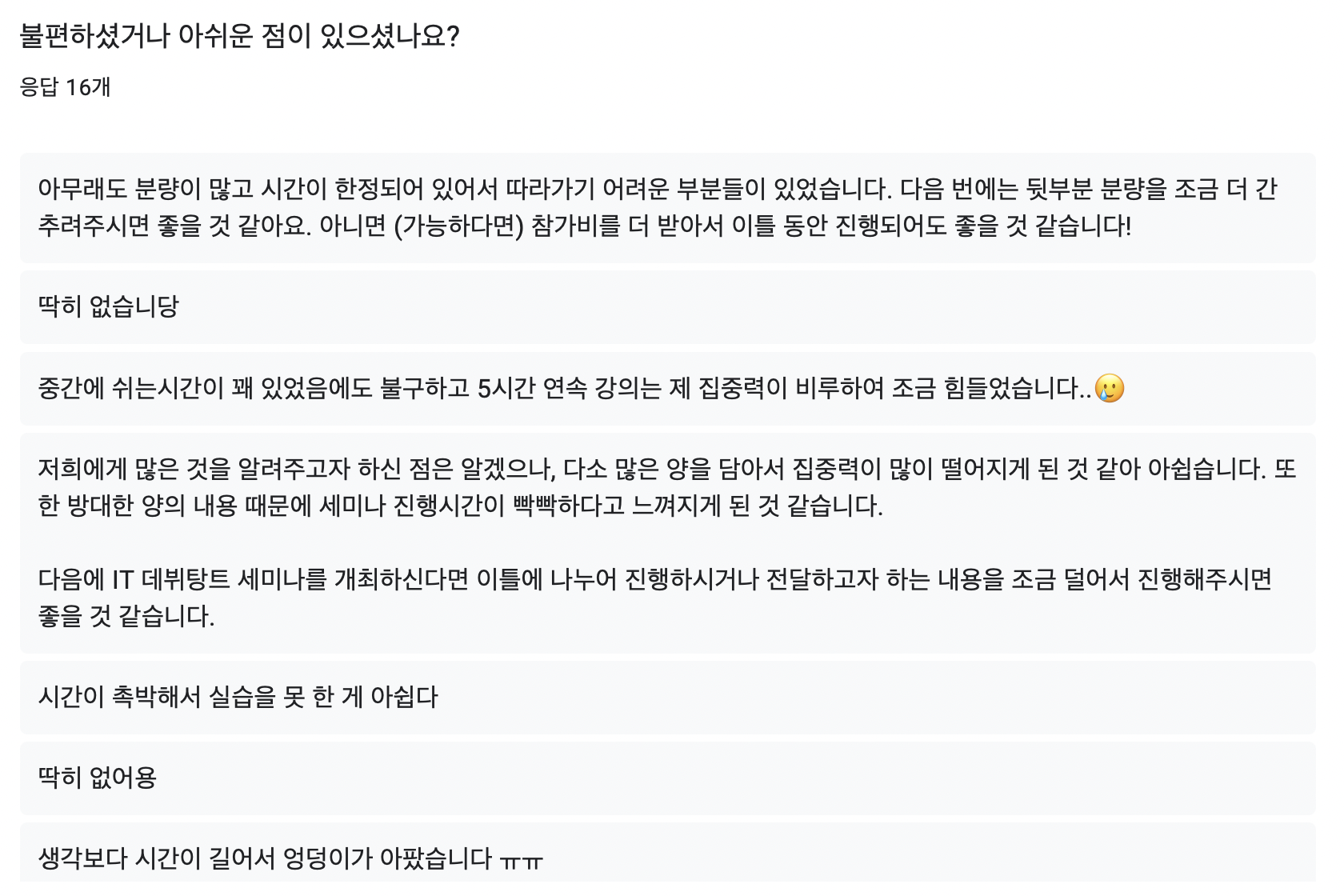 긴 시간 진행에는 "참여" 필수! 실습 굿~