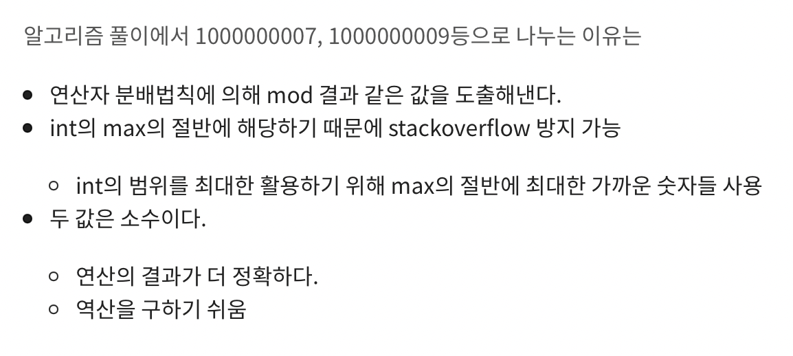 문제 풀이에서 1000000007, 1000000009으로 나누는 이유가 뭐지? (feat.모듈로 연산)