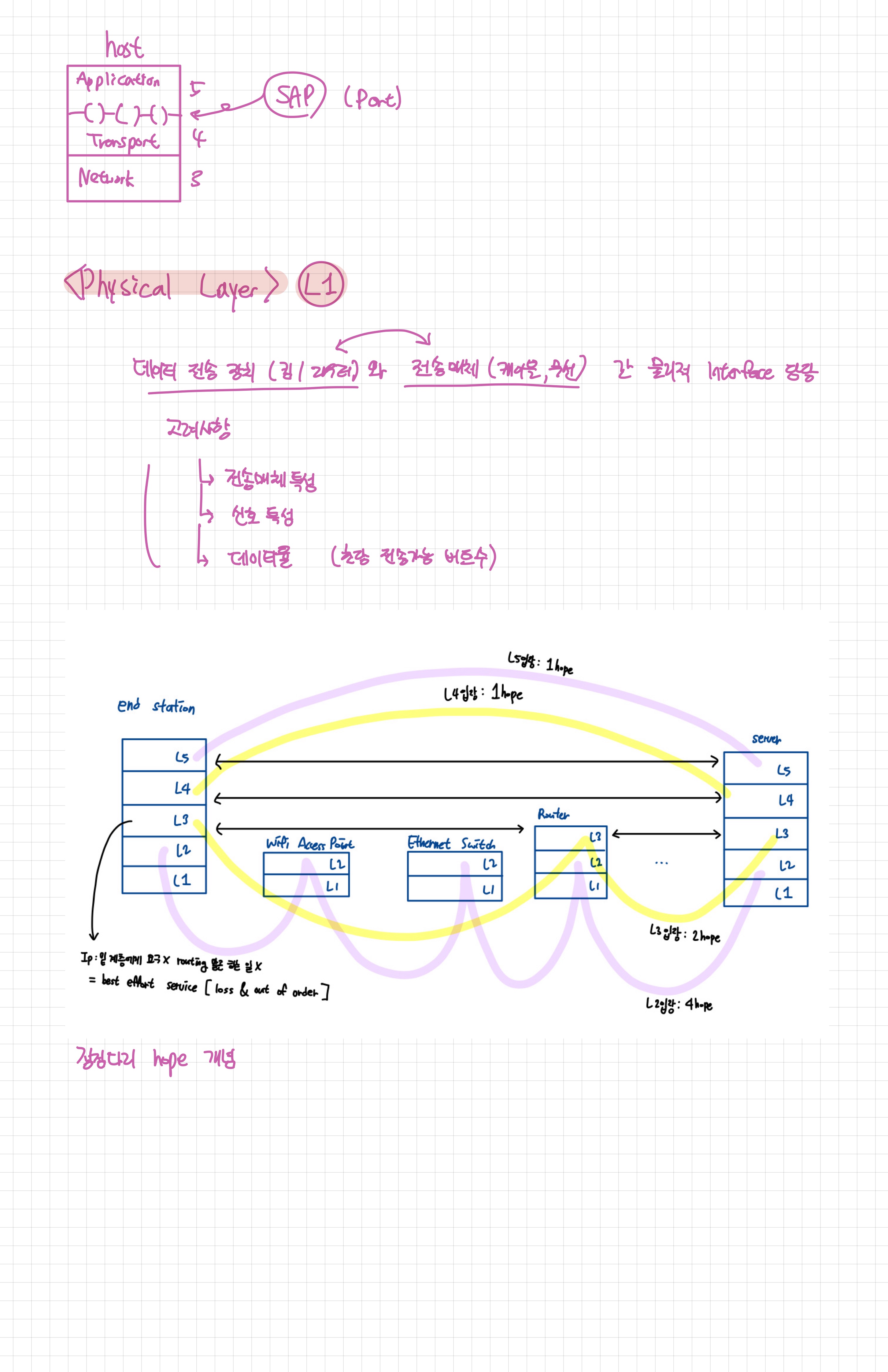 | SAP (Service Access Point) | 인접 계층 사이의 인터페이스 → 특히 L5-L4 사이는 socket |