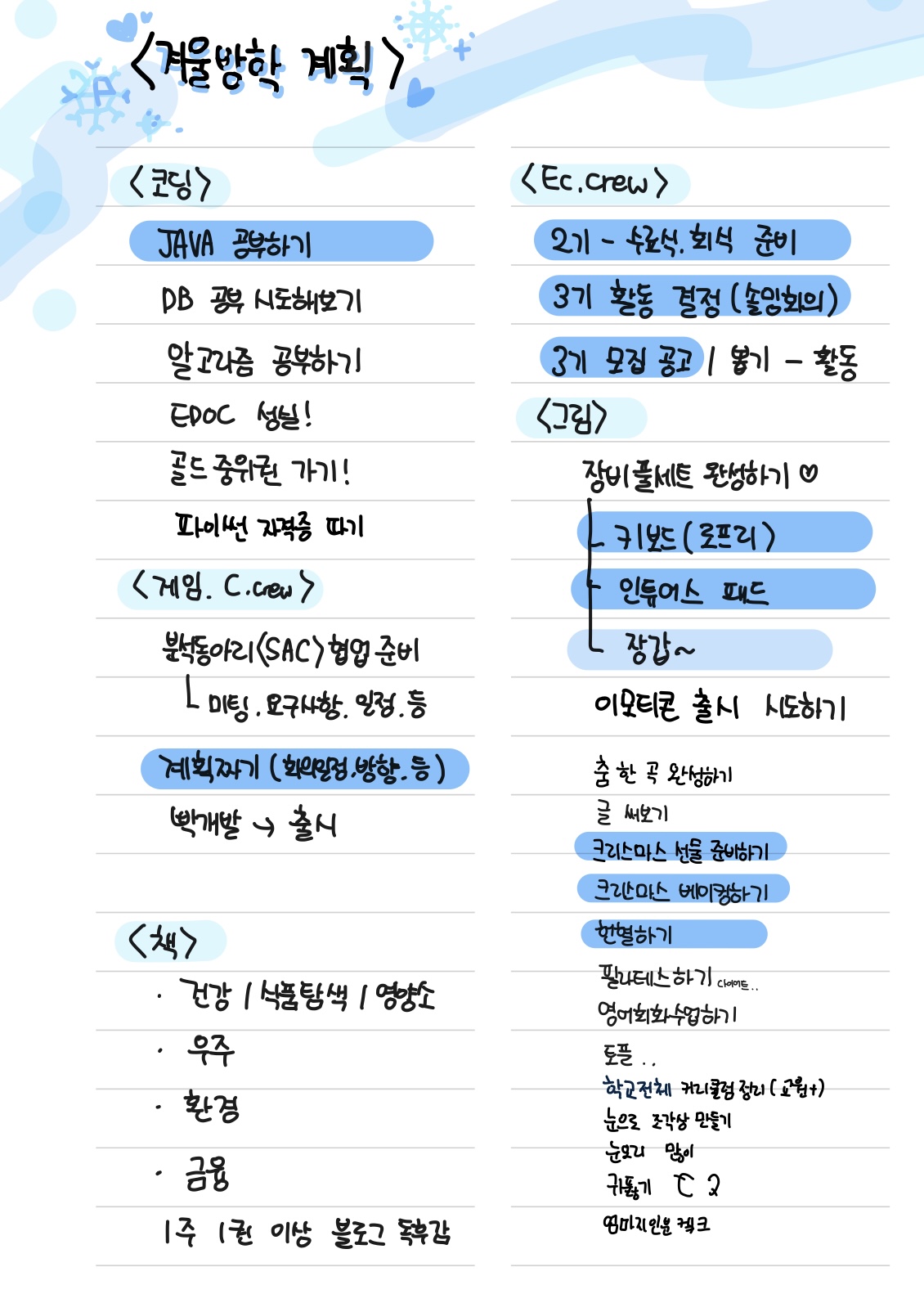 겨울방학용 계획