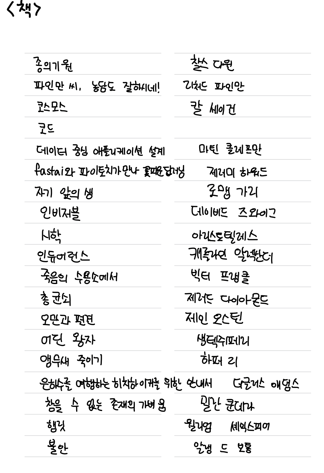 서점 갈 때마다 눈에 들어오던 책 사진 찍어서 모아둔 책폴더에서 선정